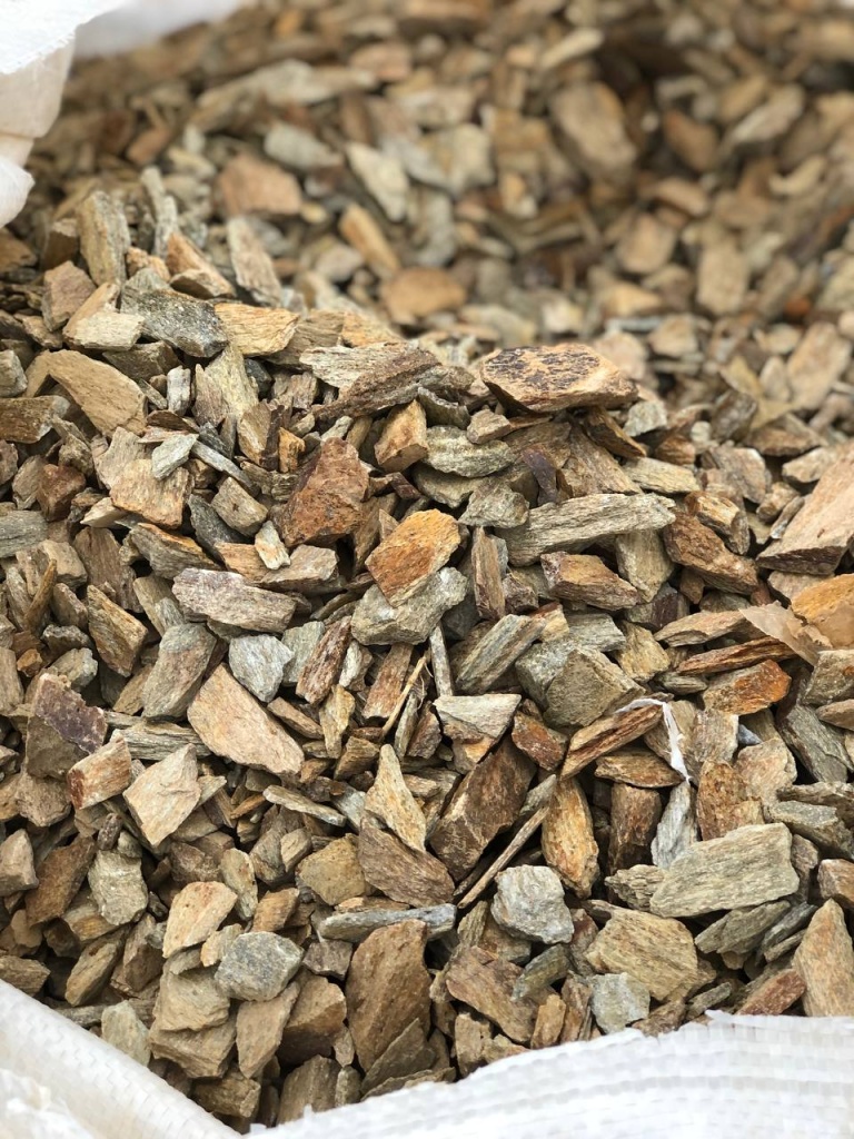 дроблёный щебень; кусочки камня имеют лещадную форму |