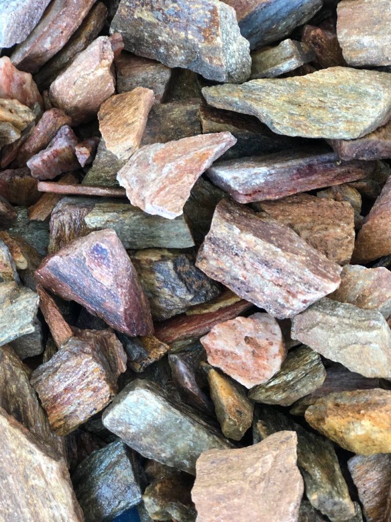 дроблёный щебень; кусочки камня имеют лещадную форму
