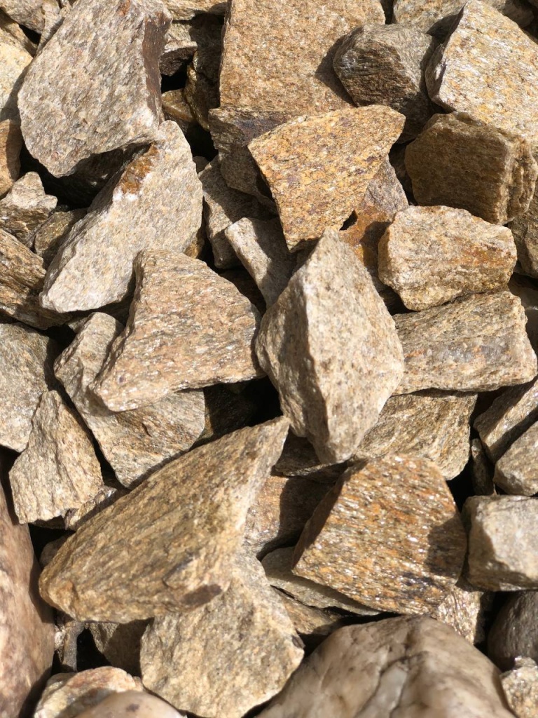 дроблёный щебень; кусочки камня имеют остроугольную форму