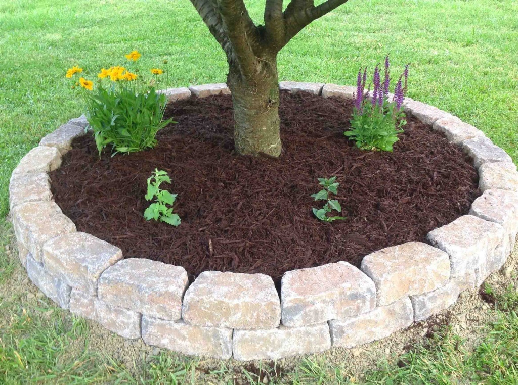 Важным моментом в установке приствольных колец является то, что Вы можете сделать это самостоятельно, без привлечения наёмных работников, т.к. камни по форме подогнаны так, чтобы при их укладке сформировался круг. Обязательным условием укладки является установка камней внахлёст, чтобы камни удерживали друг друга от расползания и падения. Верхний круг кольца