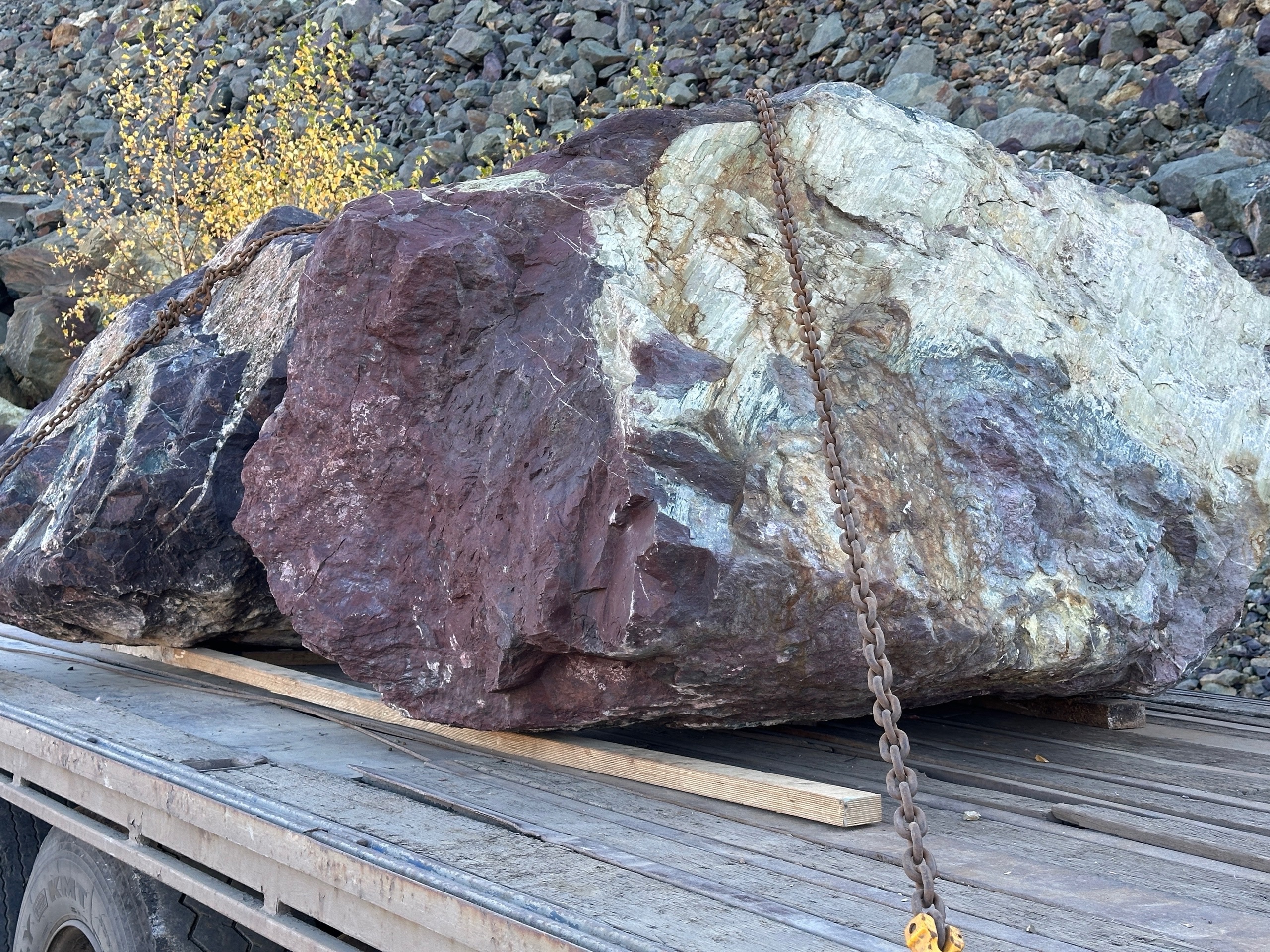 Огромные красно-фиолетовые валуны для ландшафтного дизайна весом более 5 тонн