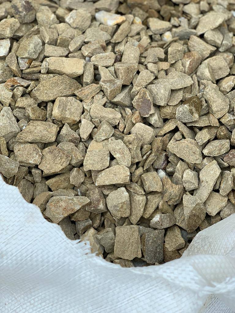 дроблёный щебень; кусочки камня имеют остроугольную форму