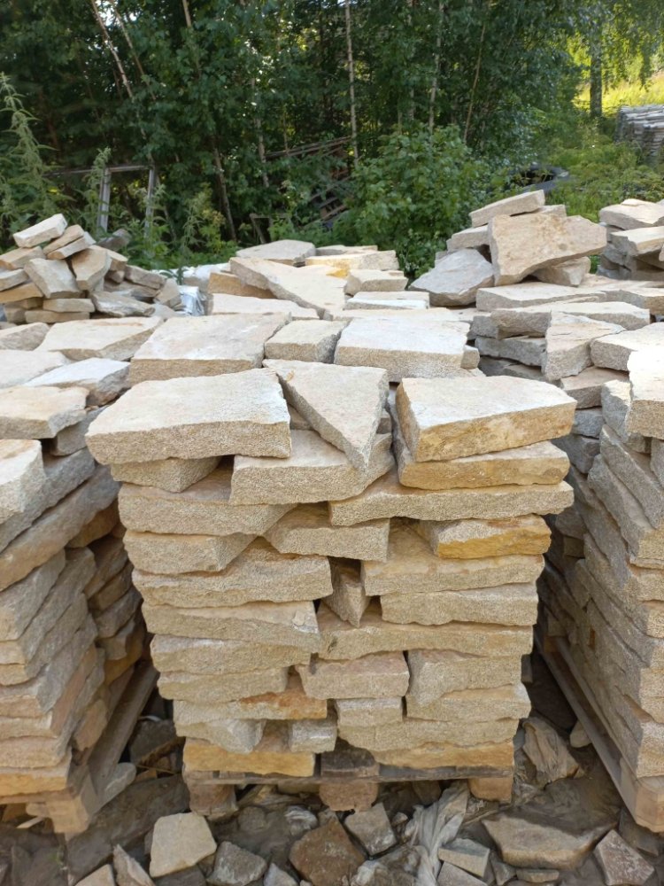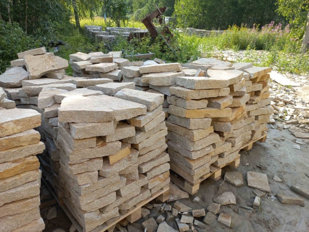 Вне всяких сомнений, если Вам нужно небольшое количество камня – 1-2-3 поддона, и плитняк Вам нужен в ближайшее время, т.к. строительная бригада уже готова приступить к работе с камнем – лучшим выходом будет покупка плитняка на ближайшем строительном рынке.
