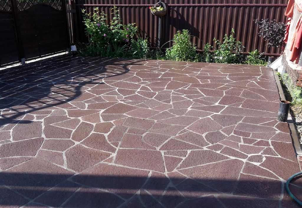 Плитняк лемезит бордовый для мощения на бетон 2,5-3 см